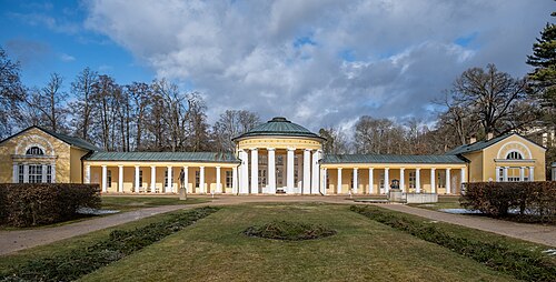Wer nur die Hauptkolonnade kennt, kennt Marienbad zur Hälfte. Die andere Hälfte liegt ein paar Gehminuten entfernt, etwas abseits vom Zentrum, etwas ruhiger, etwas weniger besucht: die Ferdinandquelle mit ihrer eigenen Kolonnade.